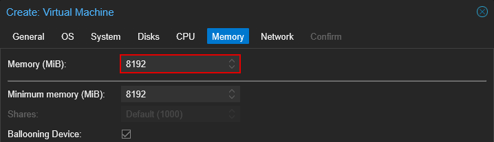 Proxmox enables memory ballooning by default. To utilize this feature, enable "Ballooning Device" and set the minimum memory to the OS's or the intended application's baseline requirement. For Windows 11, that's 4 GB. Keep in mind that memory ballooning can introduce a slight performance impact, but it only activates when the host's total memory usage exceeds 80%.