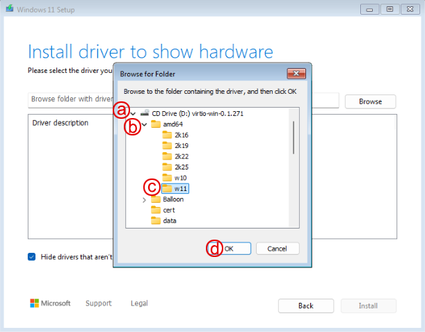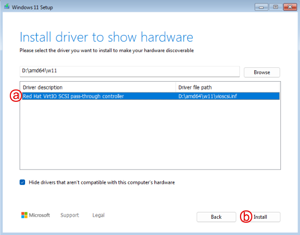 a. select the "Red Hat VirtIO SCSI pass-through controller" b. click "Install"