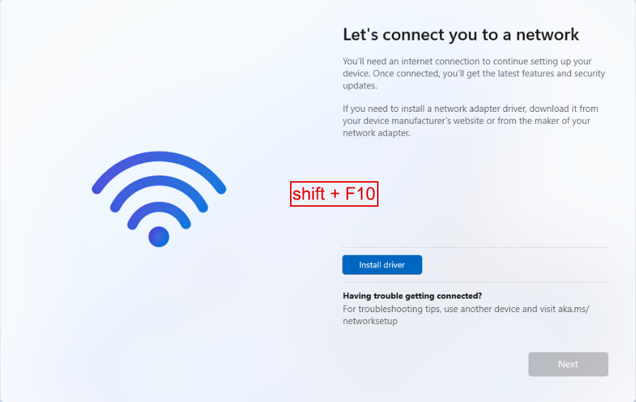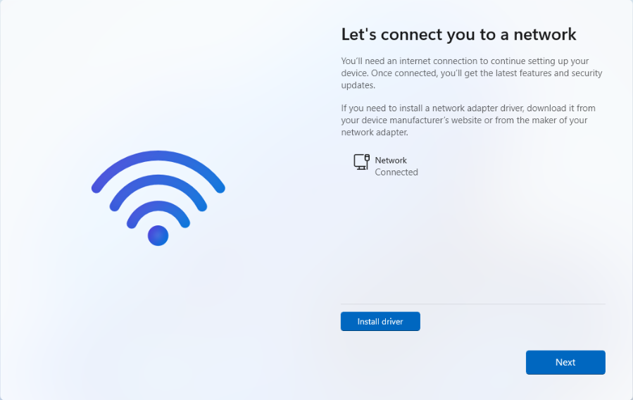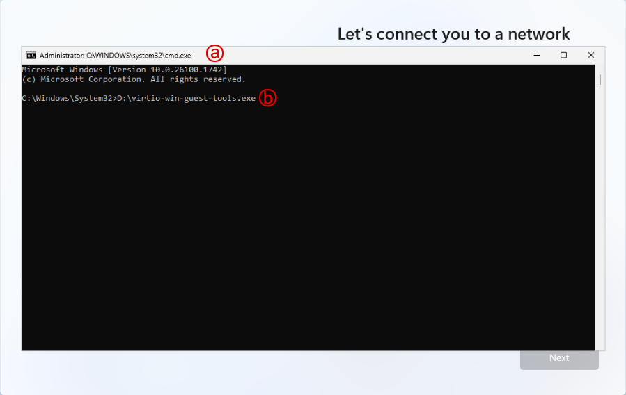 Similar to the previous steps, you'll notice there is no network to connect to. Follow the steps below to install the remaining VirtIO drivers, which include the Network driver.